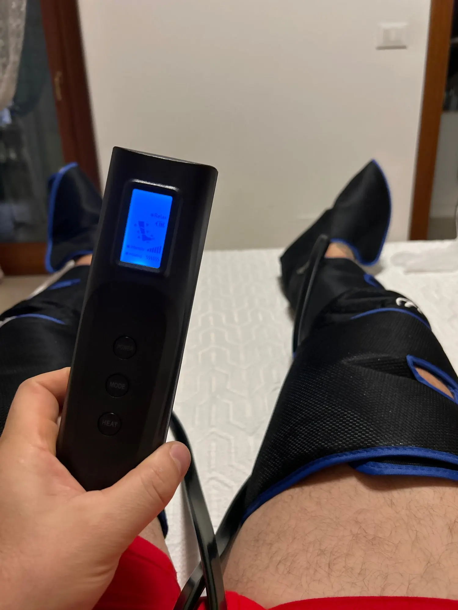 - 6 Modes: Auto, Jambe, Pied, Compression, Pincement, Massage relaxant