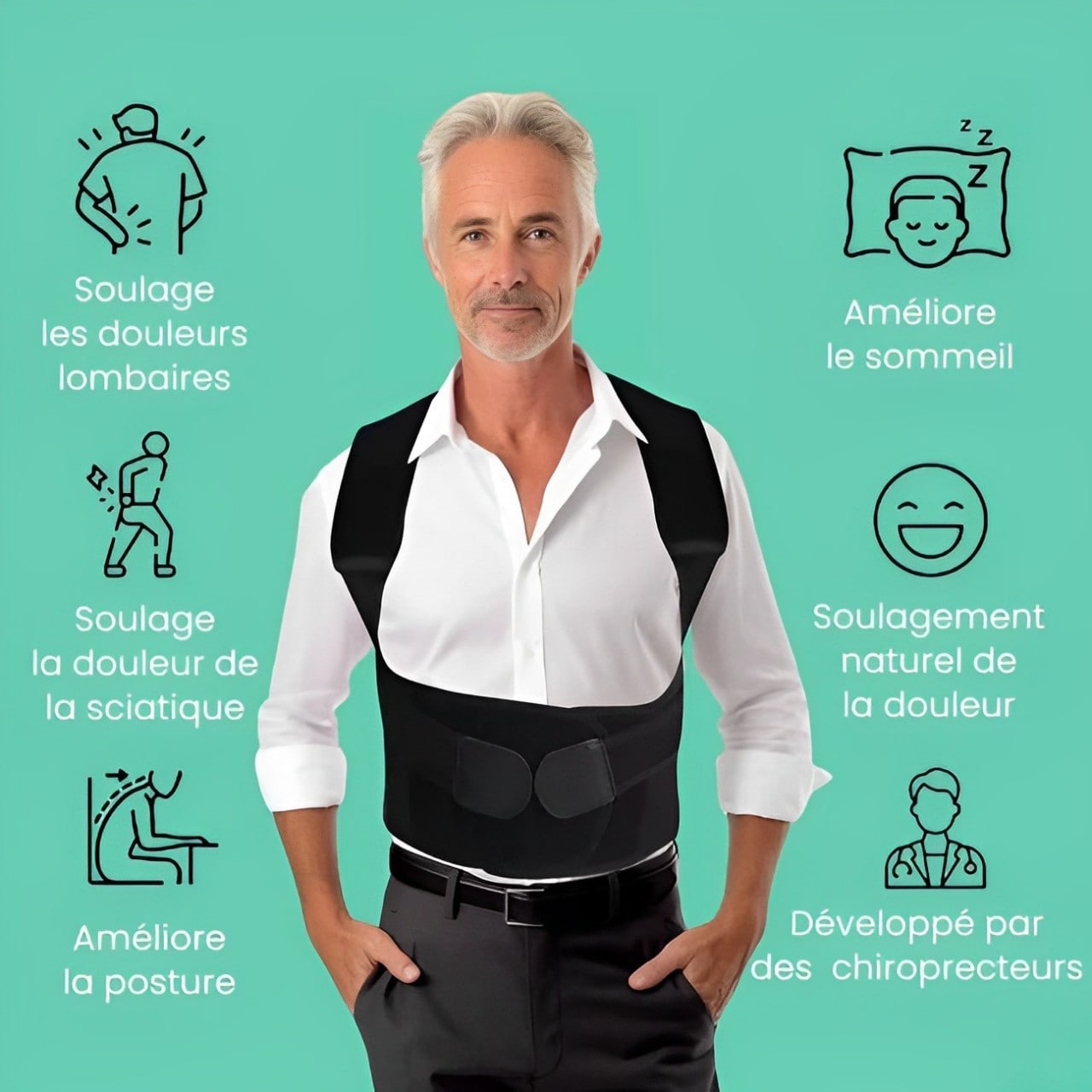 - Réduction des douleurs dorsales : Parfait pour les maux de dos causés par une mauvaise posture, il aide à soulager les tensions musculaires et la douleur lombaire .