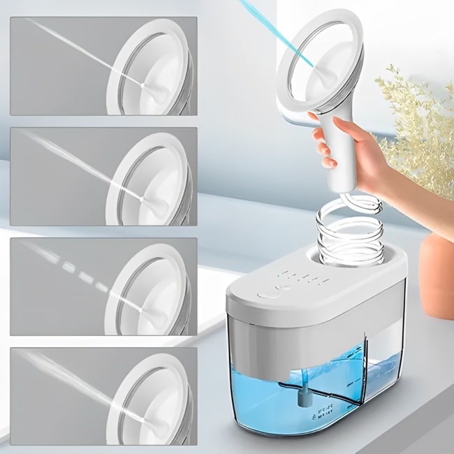- Réservoir de 400 ml intégré : Un réservoir généreux pour un nettoyage continu et prolongé, sans avoir à le remplir constamment.